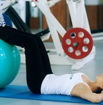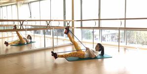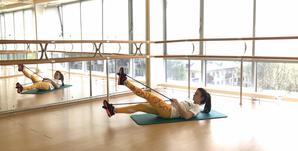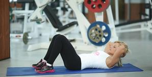 - Одновременно поднимите ноги и согните туловище. Выдохните. Совет: делайте это медленно, контролируйте каждое движение. Сконцентрируйтесь на тренировке брюшного пресса, чтобы перераспределить вес на ноги и ступни.