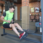 Горизонтальная тяга эспандера с подъемом ноги на босу