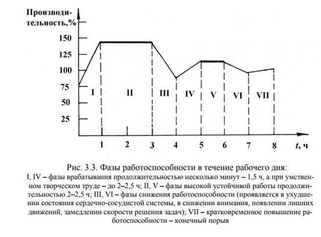 - Известный еще с времен Аристотеля совет: для повышения продуктивности следует чередовать физические и умственные нагрузки. При выполнении тяжелой физической работы необходимо чередовать каждые 15-20 мин труда с таким же по продолжительностью отдыхом. При эмоционально напряженной работе перерыв должен продолжаться около 3-5 минут.