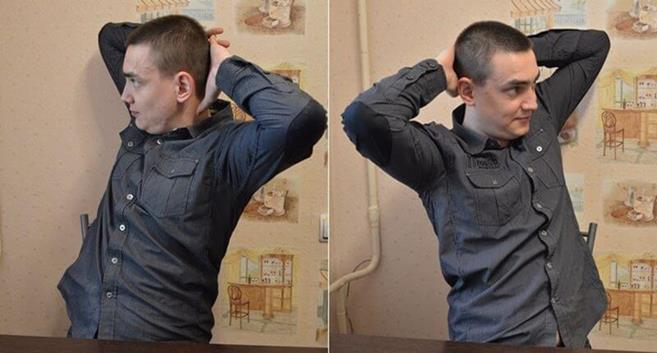 - На выдохе выпрямиться, сложив руки за голову, и прогнуться в грудной части позвоночника.