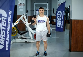 - Встаньте прямо. Руки с гантелями вытянуты по сторонам туловища. Локти почти прижаты.