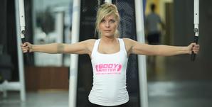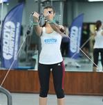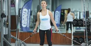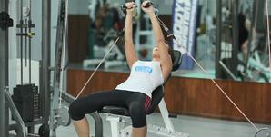 Важно: напрягаться должны только мышцы плечевого пояса, а туловище и руки оставаться неподвижными. - На выдохе вернитесь в исходную позицию. Следите за поведением тросов: они должны двигаться по прежней траектории. На секунду задержитесь в исходном положении, затем продолжите тренировку.