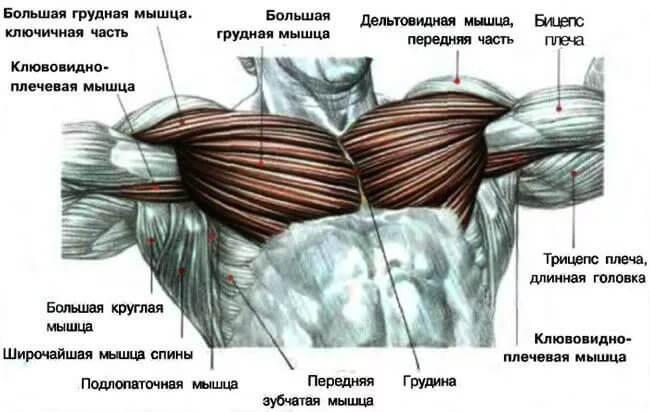 Конечно, помимо основных мышц, в работе задействованы мускулы спины, ног и пресса.