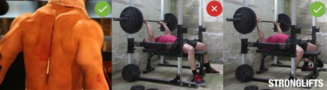Не существует единого мнения касательно прогиба спины. Так, многие спортсмены считают, что прогиб необходимо делать исключительно в пауэрлифтинге. Но, на самом деле, прогиб спины позволяет уменьшить траекторию опускания штанги, и как следствие, позволяет поднять более тяжелый вес, поскольку в таком положении активно включается нижняя часть мышц груди.