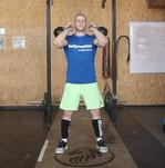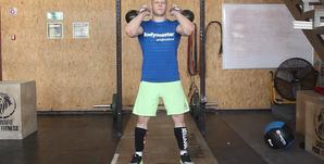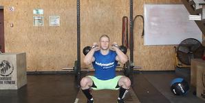 - Для большей безопасности это упражнение лучше выполнять в стойке для приседаний. Установите штангу в соответствие с ростом и загрузите необходимым весом. Встаньте под штангу так, чтобы она ложилась на заднюю часть плеч (чуть ниже шеи).