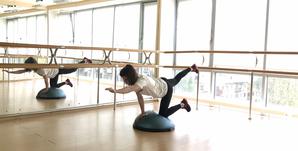 Для выполнения этого упражнения потребуется блочный тренажер и специальное фитнес устройство – босу (bosu). Упражнение эффективно прорабатывает весь пресс и помогает уменьшить объемы талии.