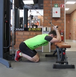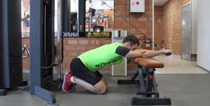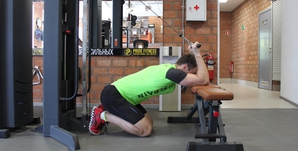 - Выполните это упражнение необходимое количество раз. Вариации: а) Данное упражнение также можно выполнять стоя, однако это создает напряжение в спине, особенно если вы используете тяжелые гантели. б) Другой вариант данного упражнения заключается в использовании EZ или прямой штанги. В этом случае необходимо держать штангу узким хватом, ладонями вперед (пронированный хват). в) Существует также штанга, внутри которой есть параллельные брусья (часто упоминается как «трицепс бластер»). Подобная штанга также может быть использована в данном упражнении. г) Наконец, низкий трос с веревкой или штангой (прямой или EZ) на конце также может быть использован.