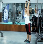 - На выдохе вернитесь в исходное положение, поднимая гантели при помощи трицепсов.