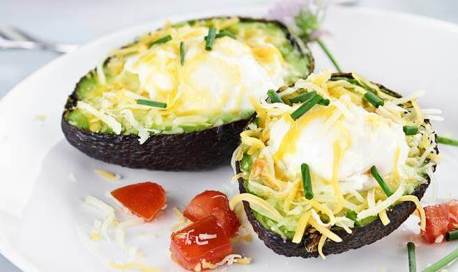 - Поместить авокадо в посуду для запекания, разбить в лунку яйцо.