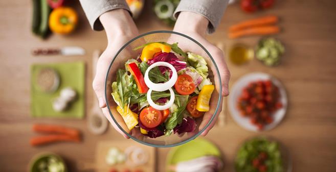 Разнообразить любое, даже самое строгое вегетарианское меню можно при помощи салатов, приготовление которых не занимает много времени, а ингредиенты можно варьировать в зависимости от фантазии. Например, вы можете приготовить салат из цветной капусты, огурца и редиса, заправить его сметаной или оливковым маслом, и добавить зелень. Для восполнения белка можно готовить салаты с чечевицей, фасолью, твердыми сортами сыра.