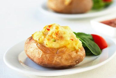 - Перед подачей на стол полейте фаршированный картофель приготовленным соусом.