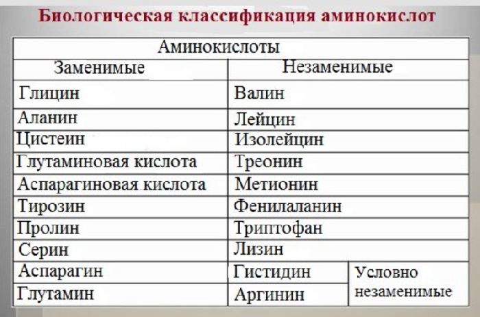 В природе встречается около 500 аминокислот. Однако всего 22 используется в генетическом коде для синтеза разнообразных белков. В зависимости от возможности синтезироваться внутри организма все эти аминокислоты разделяются на три группы – заменимые, незаменимые, частично заменимые.
