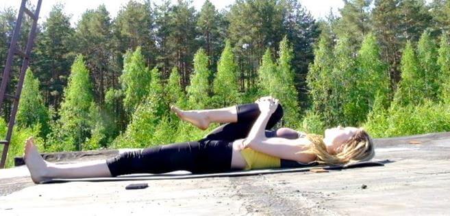 Растяжка ягодичных мышц лежа на спине
