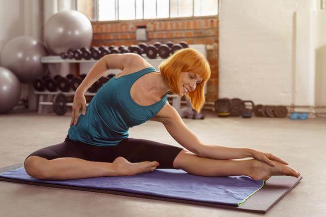 Корпус развернут вправо, свободная рука тянется вверх. Повторите для другой стороны.