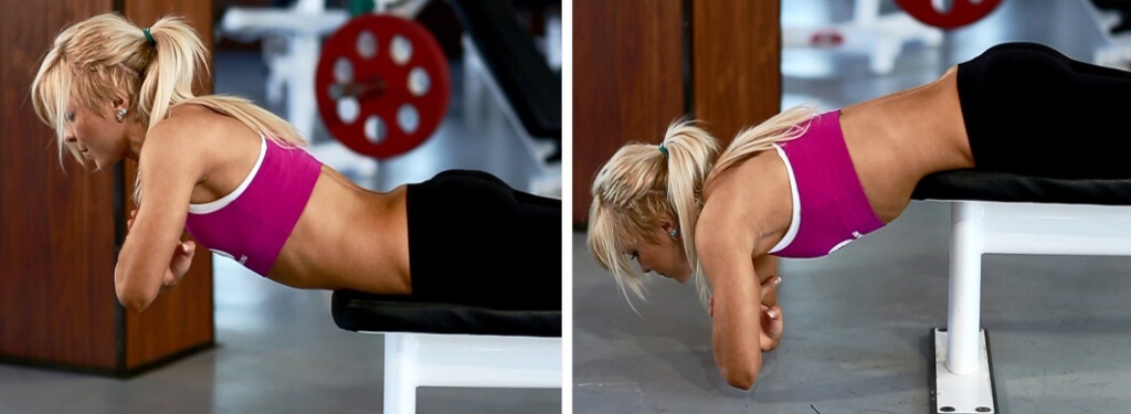 Если вы раздумываете, какими упражнениями можно накачать ягодицы, рекомендуем не игнорировать гиперэкстензию! Лягте животом на скамью и установите лодыжки под валиками. Установите верхнюю платформу на уровне бедер, чтобы вам было легко наклониться.